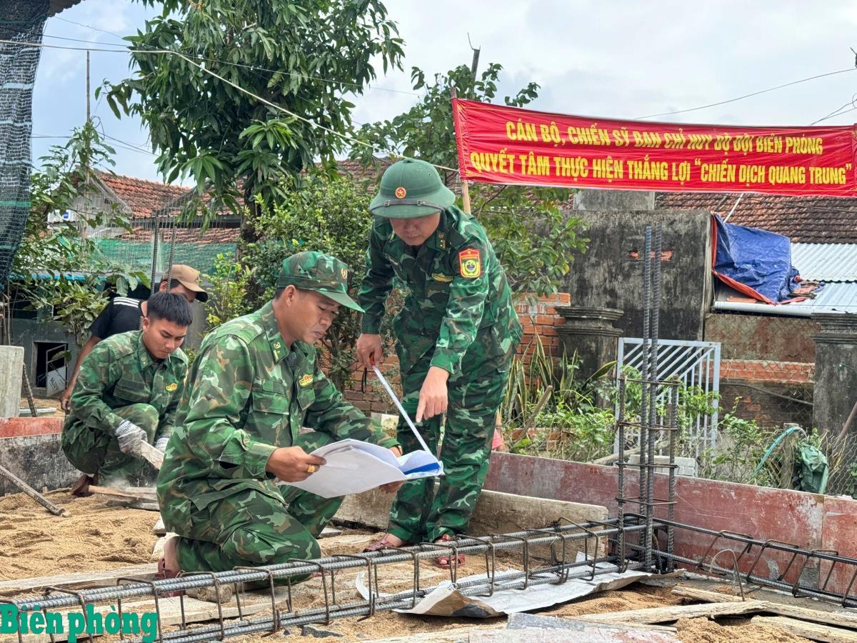 Cán bộ, chiến sĩ Hải đoàn Biên phòng 48 giúp dân xây dựng nhà mới. Ảnh: Tấn Sang