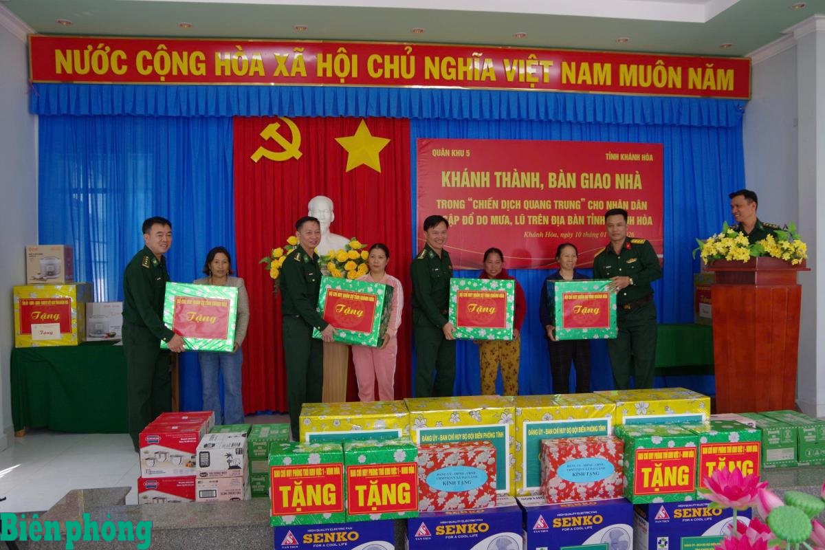 Đại diện Ban Chỉ huy Bộ đội Biên phòng tỉnh Khánh Hòa trao quà cho các hộ dân trong Chiến dịch Quang Trung. Ảnh: Văn Tân