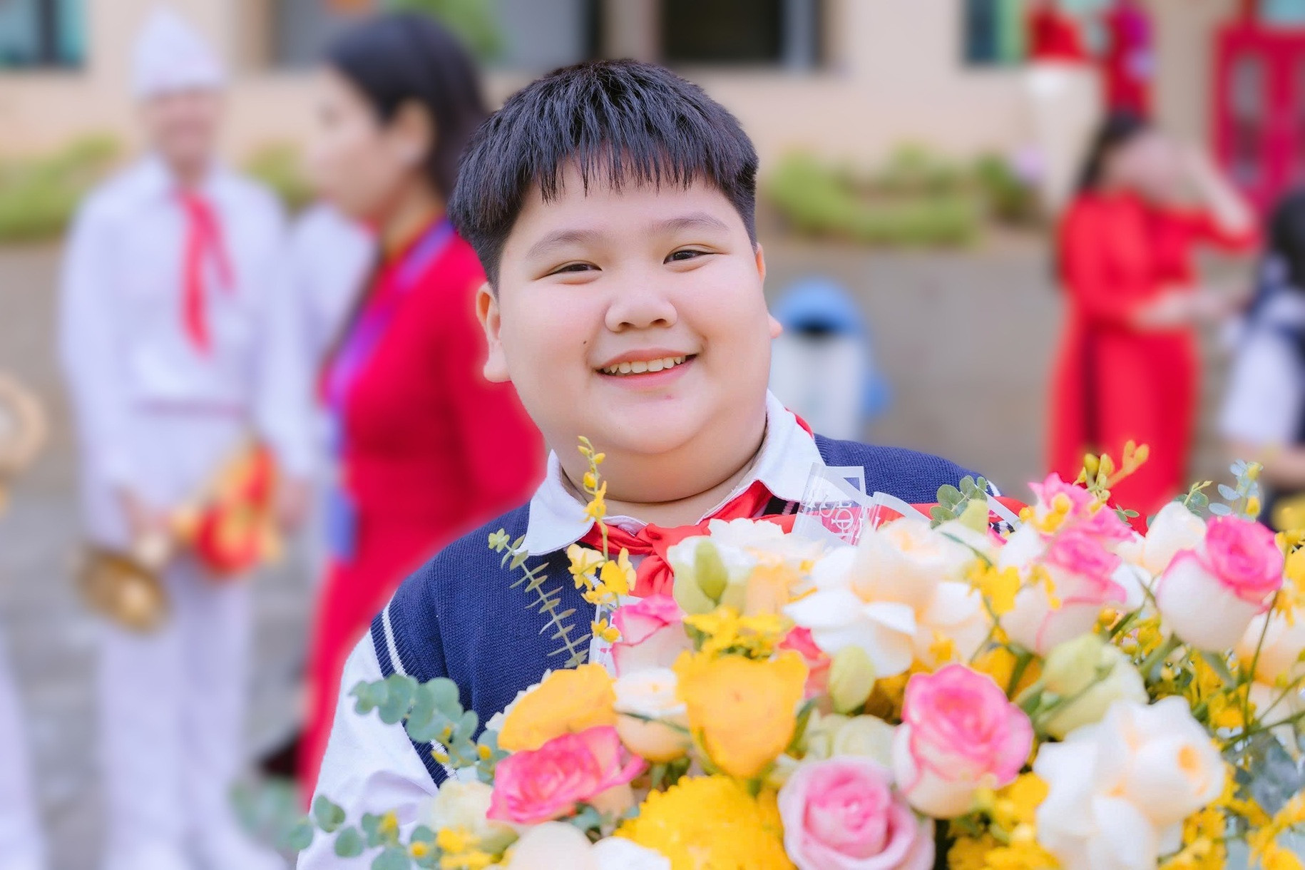 Bùi Nguyên Gia Bảo hiện là học sinh lớp 6A9 Trường THCS Tây Mỗ 3 (Hà Nội) có bảng thành tích học tập ấn tượng, trái ngược với cậu bé Chiến Đo học dốt đều trong phim "Cách em một milimet". Ảnh: NVCC