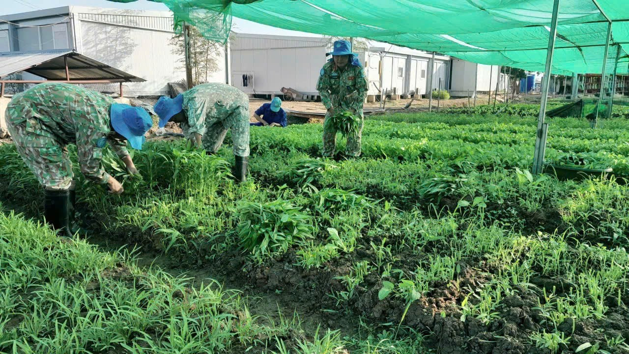 Với mục tiêu kiến tạo “vùng xanh”, các phân đội còn thi quy hoạch, chăm sóc khu tăng gia sản xuất và chế biến. Tại nơi thiếu thốn nguồn thực phẩm tươi sống, sự sáng tạo trong việc tận dụng vật chất và tìm kiếm giống cây trồng phù hợp, đã thể hiện tinh thần không đầu hàng trước khó khăn của những người lính Việt Nam tại vùng đất Abyei khắc nghiệt.