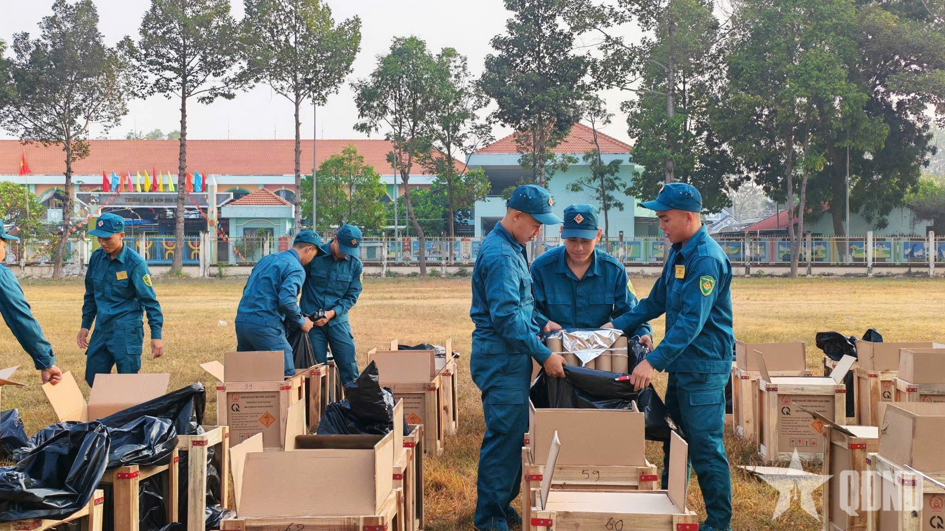 Tại Ban CHQS xã Minh Thạnh (Bộ tư lệnh TP Hồ Chí Minh), cán bộ, chiến sĩ đang tích cực hỗ trợ các lực lượng chức năng triển khai trận địa pháo hoa tầm thấp phục vụ nhân dân đêm giao thừa. Các công việc đều được thực hiện cẩn trọng, đúng quy trình kỹ thuật, bảo đảm an toàn tuyệt đối về người và phương tiện.