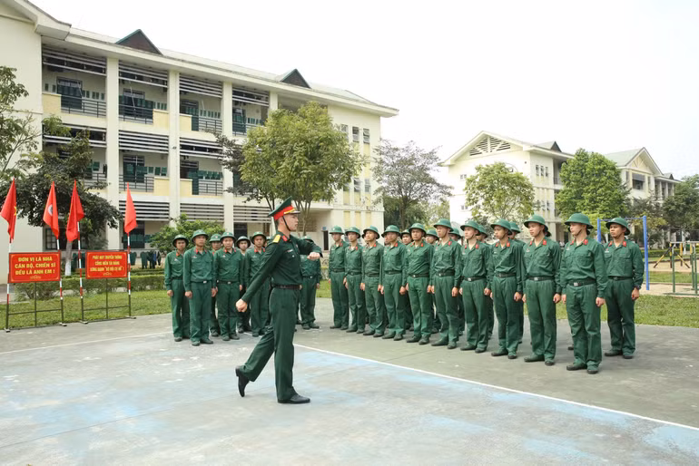 Trung đội 12, Đại đội 14 tổ chức huấn luyện Điều lệnh đội ngũ.