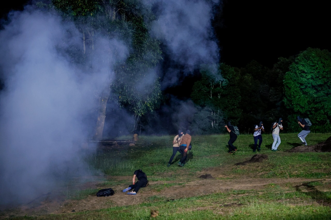 Trong buổi diễn tập, các chiến sĩ nhập vai cũng phải hành quân hơn 4km với trang bị đầy đủ. Thử thách càng tăng lên khi trời đổ mưa, địa hình trở nên trơn trượt và côn trùng xuất hiện. Tất cả phải giữ vững vị trí ẩn nấp, bởi chỉ một sơ suất nhỏ cũng có thể làm bại lộ toàn bộ kế hoạch.