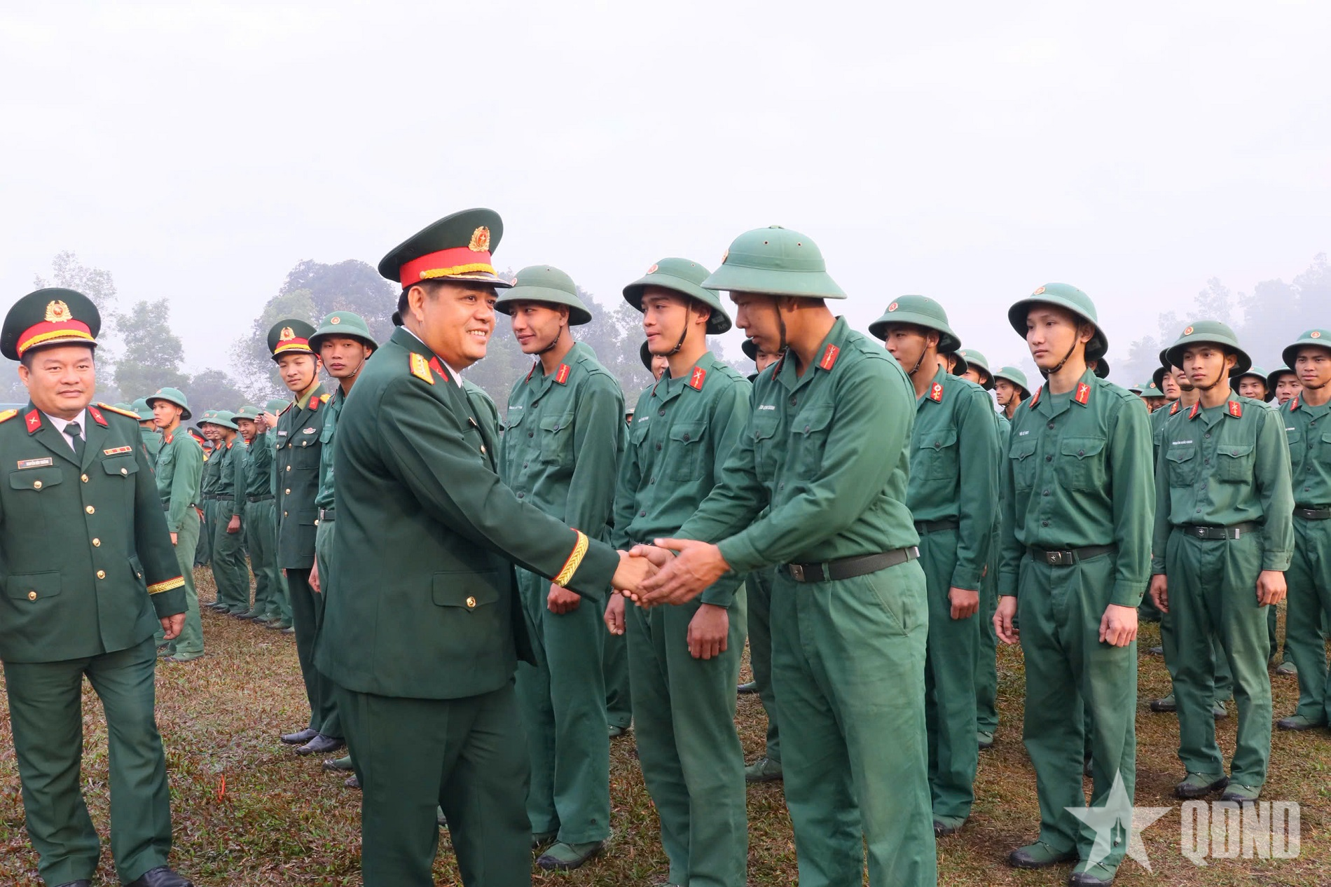 Lãnh đạo, chỉ huy Sư đoàn 390 động viên chiến sĩ xuất ngũ.