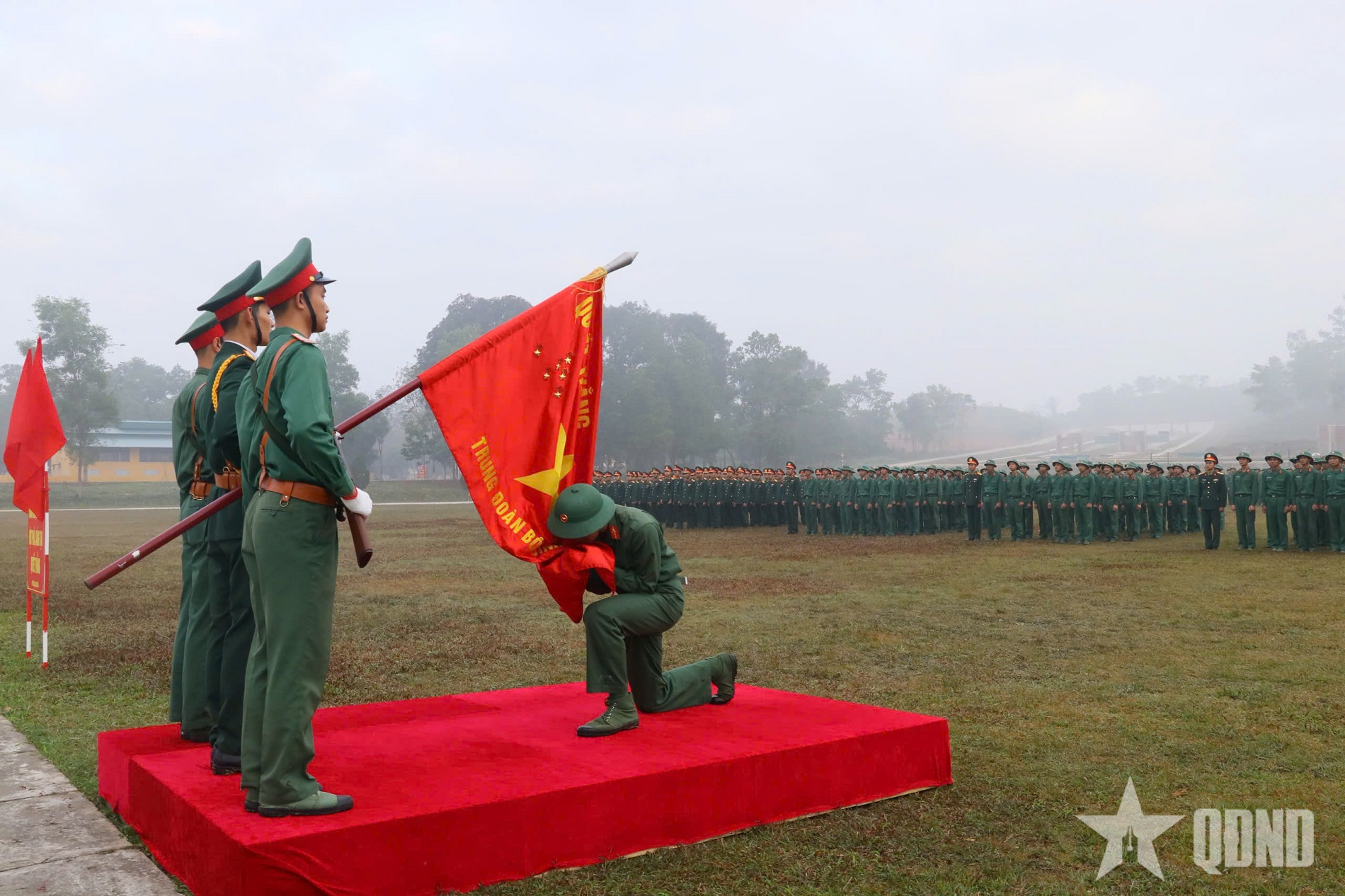 Chiến sĩ thực hiện nghi thức hôn quân kỳ.