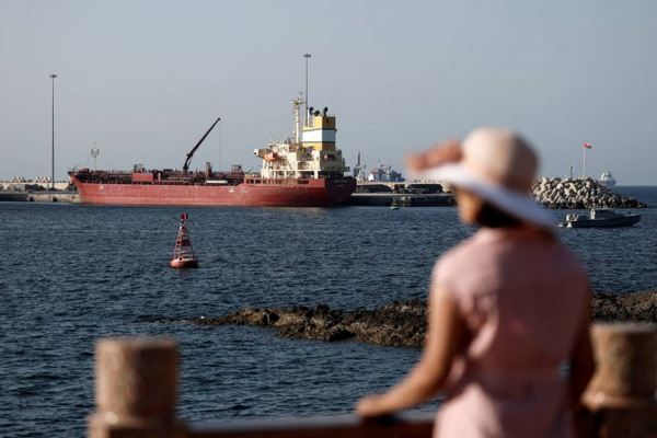 Một tàu chở dầu neo đậu tại Muscat, Oman, gần eo biển Hormuz. Ảnh: Benoit Tessier/Reuters.