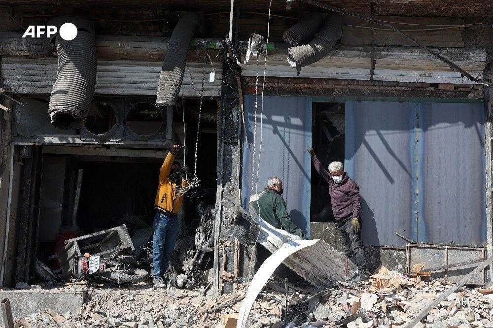 Người dân kiểm tra một tòa nhà bị hư hại sau một cuộc không kích tại trung tâm thủ đô Tehran (Iran). Ảnh: AFP