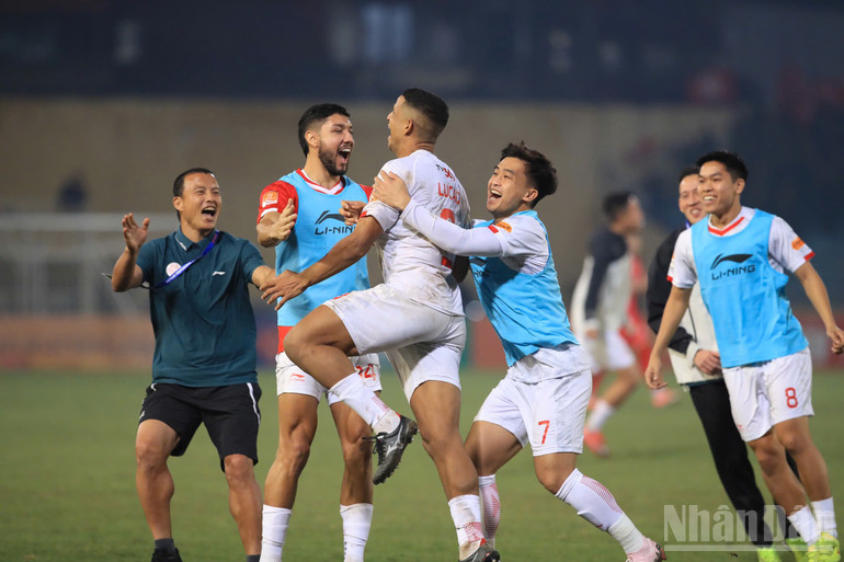 Áp lực tiếp tục đè nặng ở lượt thứ tư khi cả Stefan Mauk lẫn Wesley Nata đều sút hỏng, khiến khoảng cách giữa hai đội không thay đổi. Ở lượt quyết định, Lucao giữ vững tinh thần, thực hiện thành công cú sút quan trọng. Lê Văn Đô cũng ghi bàn ở lượt sút cuối của Công an Hà Nội, nhưng không đủ để cứu đội nhà khỏi thất bại.