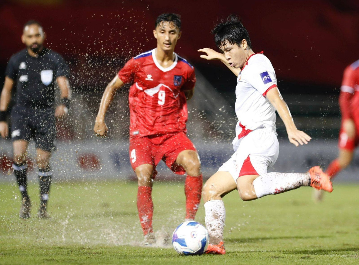 Những vũng nước và mặt sân xấu khiến các tuyển thủ bị ảnh hưởng, nhưng chính chúng đã làm chậm bước tiến của cầu thủ Nepal. Chúng ta có thể đổ lỗi cho việc may mắn quay lưng, khi có đến 3 pha dứt điểm dội khung gỗ. Thế nhưng cần lưu ý, may mắn đã đứng về phía chúng ta mới có bàn thắng phút thứ 4, và giúp mành lưới của Trung Kiên không một lần rung lên.