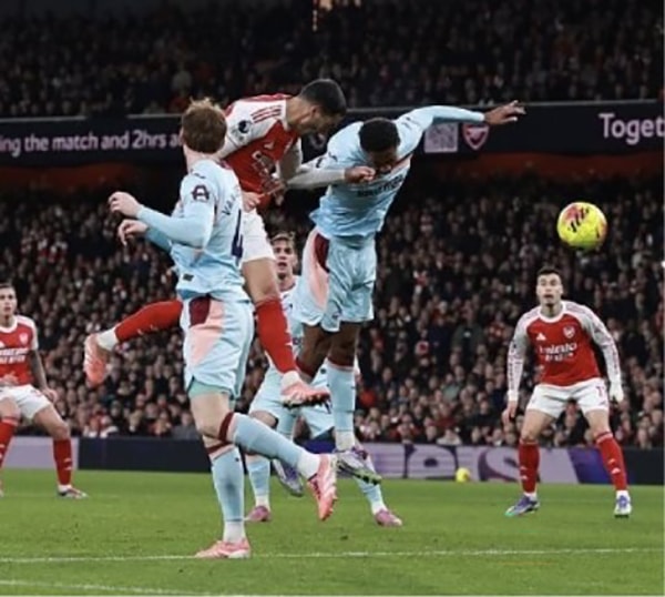 Trận đấu diễn ra khá đúng với dự đoán. Trong khi Brentford tiếp tục duy trì sự nguy hiểm từ những quả ném biên mạnh và các bài đánh mang tính hỗn loạn đặc trưng, Arsenal lại tối ưu hóa khoảng trống, hướng di chuyển và áp lực dựa trên xác suất để "đánh gục" hàng phòng ngự đối phương bằng chiến thuật khoa học. Chỉ sau 10 phút đầu tiên, đội chủ nhà đã có bàn mở tỉ số trận đấu. Sau khi nhận đường chuyền từ Madueke, Ben White có cú tạt bóng như đặt để Merino đánh đầu tung lưới Brentford. Đến phút 21, đội khách có một cơ hội rất rõ ràng để san bằng tỉ số. Từ tình huống phạt góc, Kevin Schade bật cao đánh đầu, bóng sượt qua đầu ngón tay của Raya trước khi tìm đến xà ngang khung thành Arsenal. Những phút tiếp theo, Arsenal áp đảo hoàn toàn đối thủ. Đội khách cũng có một số pha phản công đáp trả, tuy nhiên tỉ số 1-0 được giữ nguyên cho đến khi hiệp 1 kết thúc.