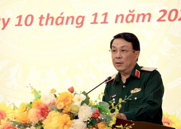 Thiếu tướng Nguyễn Xuân Thủy, Phó Cục trưởng Cục Tuyên huấn phát biểu tại họp báo.