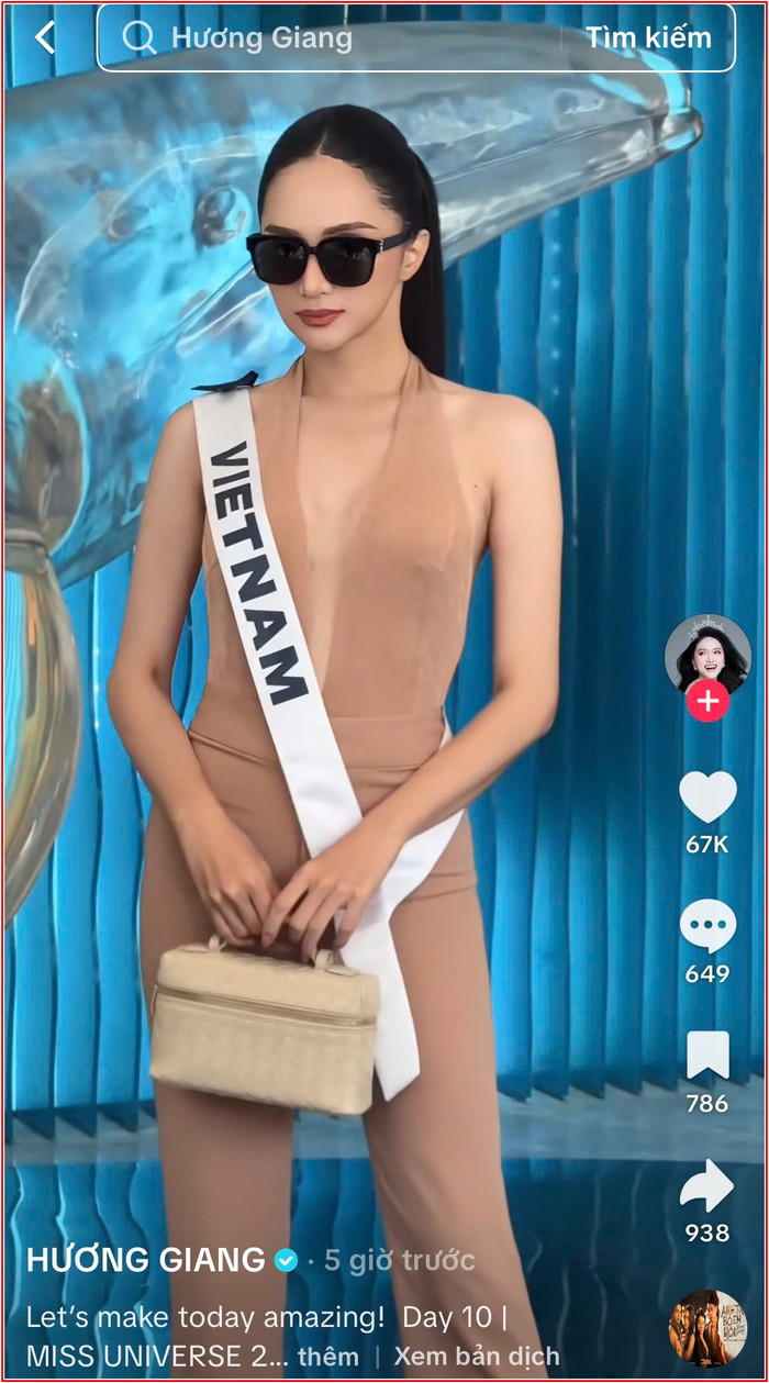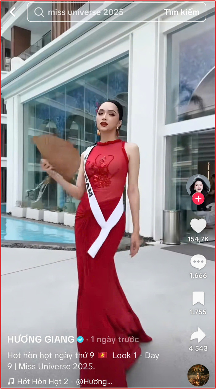 Dù bận rộn với lịch trình dày đặc, Hương Giang vẫn duy trì tương tác với người hâm mộ thông qua mạng xã hội, đặc biệt là TikTok - nơi cô sở hữu hơn 4 triệu người theo dõi. Những đoạn clip ghi lại khoảnh khắc Hương Giang tham gia các hoạt động tại cuộc thi đều nhanh chóng thu hút lượt xem lớn cùng hàng nghìn bình luận từ fan trong nước lẫn quốc tế.