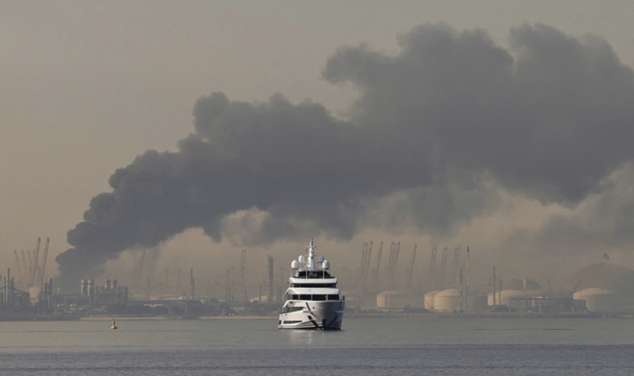 Cột khói lớn bốc lên tại cảng Jebel Ali ở Dubai. (Ảnh: Getty)