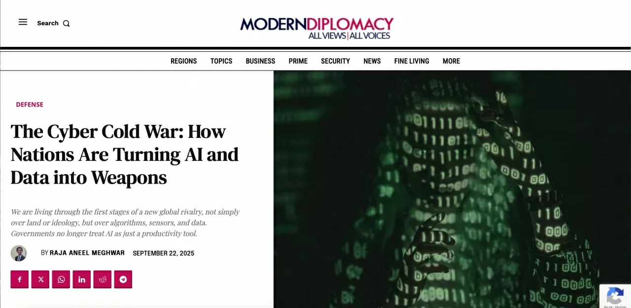 Đó là nhận định trong bài viết "The Cyber Cold War: How Nations Are Turning AI and Data into Weapons" (Tạm dịch: Chiến tranh Lạnh trên không gian mạng: Cách các quốc gia biến AI và dữ liệu thành vũ khí) đăng tải trên Modern Diplomacy, ngày 22/9.
