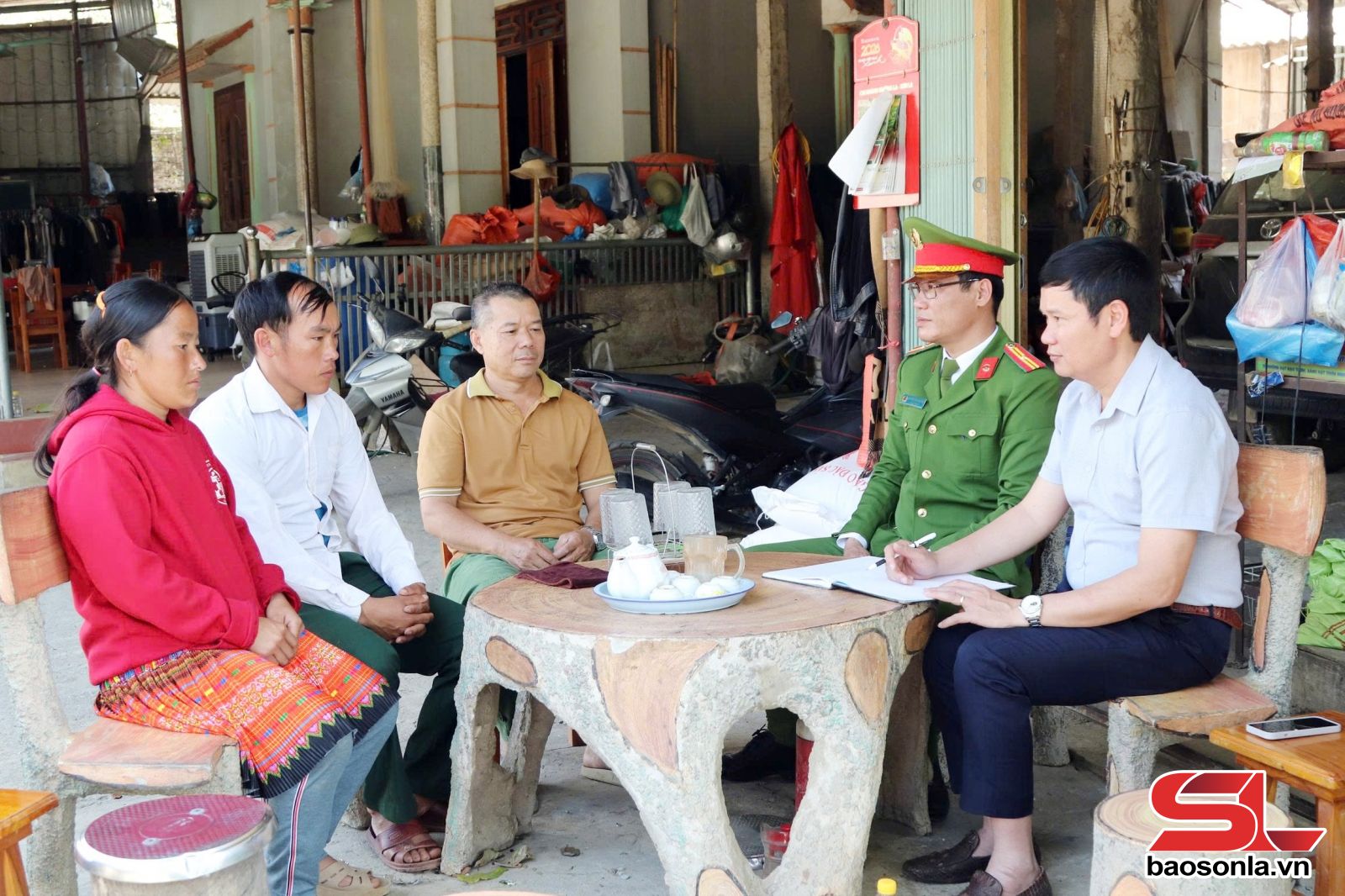 Cán bộ xã và Công an xã Chiềng Hoa tuyên truyền, vận động nhân dân tham gia bầu cử.