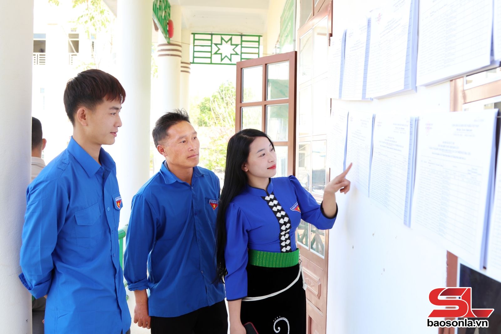 Cán bộ xã Chiềng Hoa niêm yết danh sách cử tri tại nhà văn hóa xã.