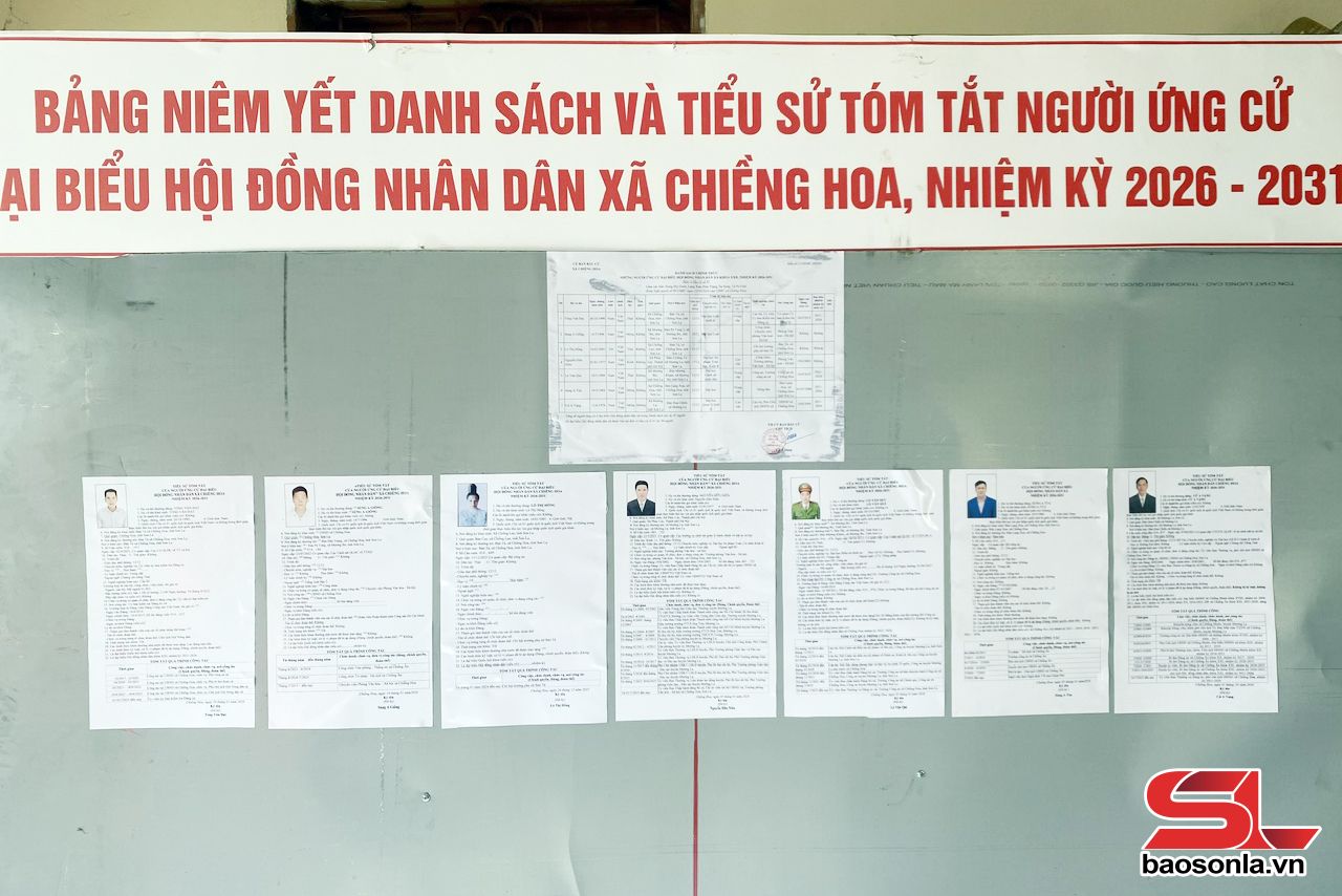 Chuẩn bị cho công tác bầu cử đại biểu Quốc hội khóa XVI và đại biểu HĐND các cấp nhiệm kỳ 2026-2031, từ cuối tháng 11/2025, UBND xã Chiềng Hoa đã thành lập Ủy ban bầu cử xã, gồm 17 thành viên; thành lập 34 tổ bầu cử của xã, phụ trách 34 khu vực bỏ phiếu. Xã đã quán triệt cho các tổ bầu cử về các chỉ thị, quy định của Trung ương và của tỉnh trong triển khai công tác bầu cử. Hiện nay, căn cứ vào cơ sở dữ liệu dân cư, xã đang chỉ đạo các Tổ bầu cử hoàn thành thống kê số cử tri trên địa bàn xã tham gia bỏ phiếu trong ngày hội bầu cử, niêm yết danh sách cử tri. Đến ngày 25/2, có thêm 35 trường hợp được bổ sung tên vào danh sách cử tri, 5 cử tri được xác nhận bỏ phiếu nơi khác, tổng số cử tri đủ điều kiện bầu cử toàn xã 10.332 người.