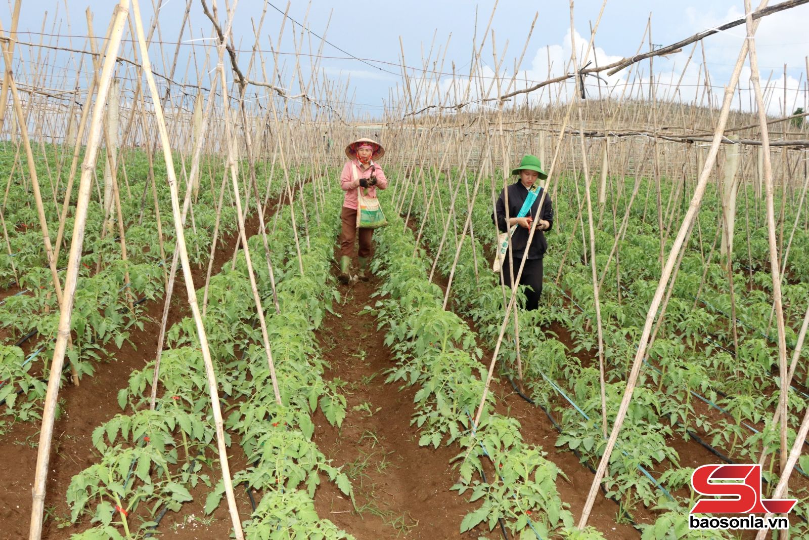 Nhân dân bản Cao Sơn chăm sóc cà chua.