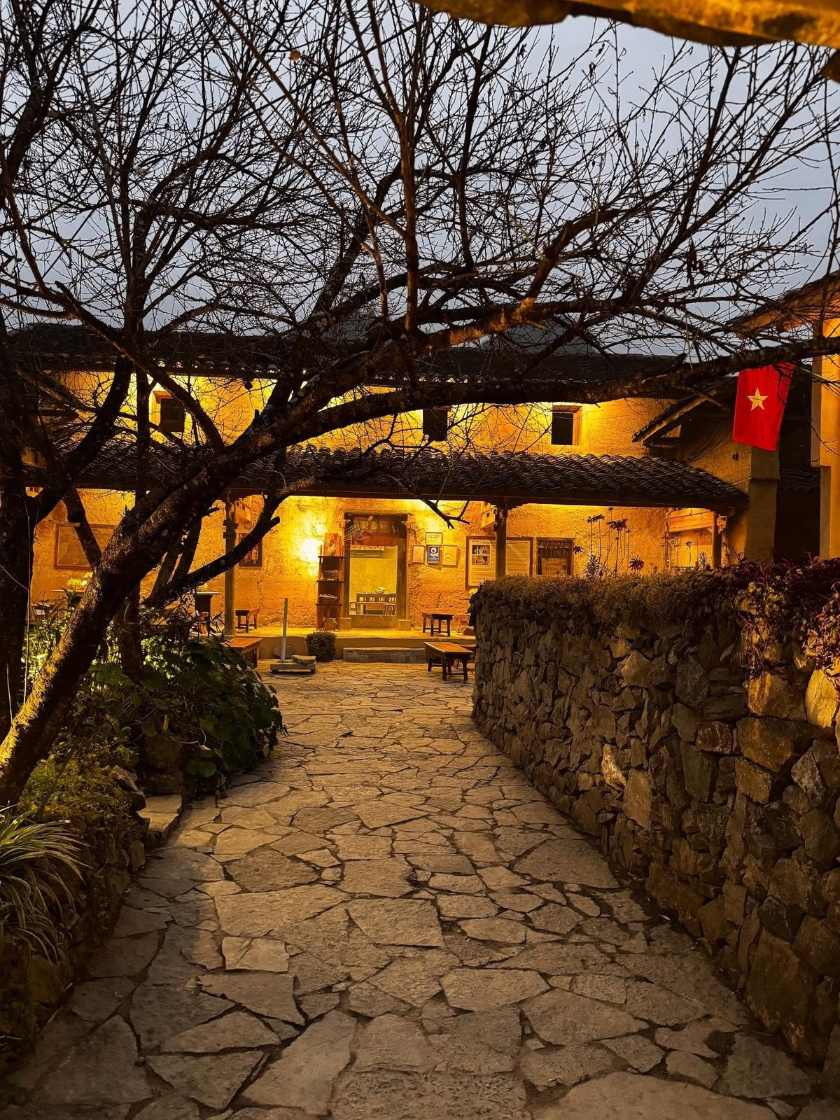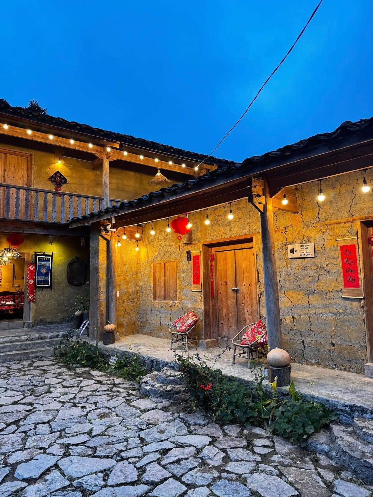 Điểm nhấn đầu tiên là hệ thống nhà trình tường đặc trưng. Những ngôi nhà nối tiếp nhau, với mái ngói và đá mang sắc xám nhè nhẹ, tường đất vàng ấm áp, vừa tạo vẻ đẹp hài hòa vừa giữ nhiệt độ lý tưởng quanh năm. Ảnh nt.tnguyen__