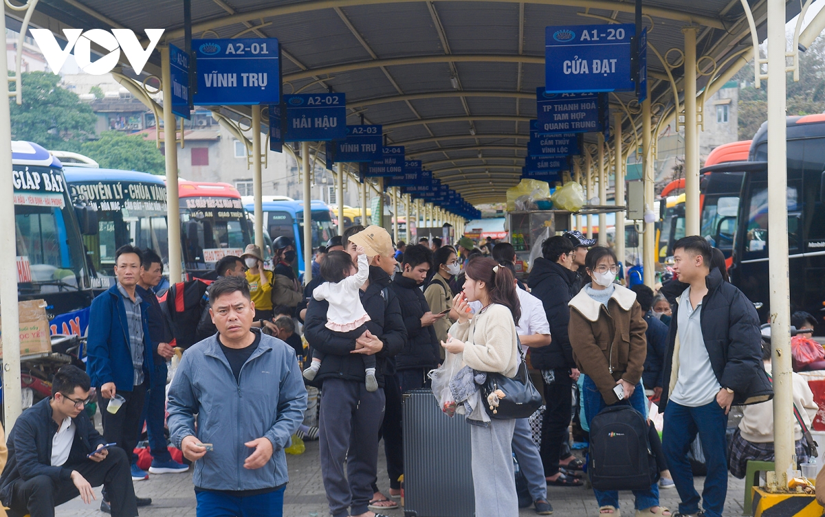 Ngay từ đầu giờ chiều, tại các bến xe lớn, không khí đã trở nên nhộn nhịp khi dòng người tay xách nách mang đổ về tìm chuyến xe sớm nhất.
