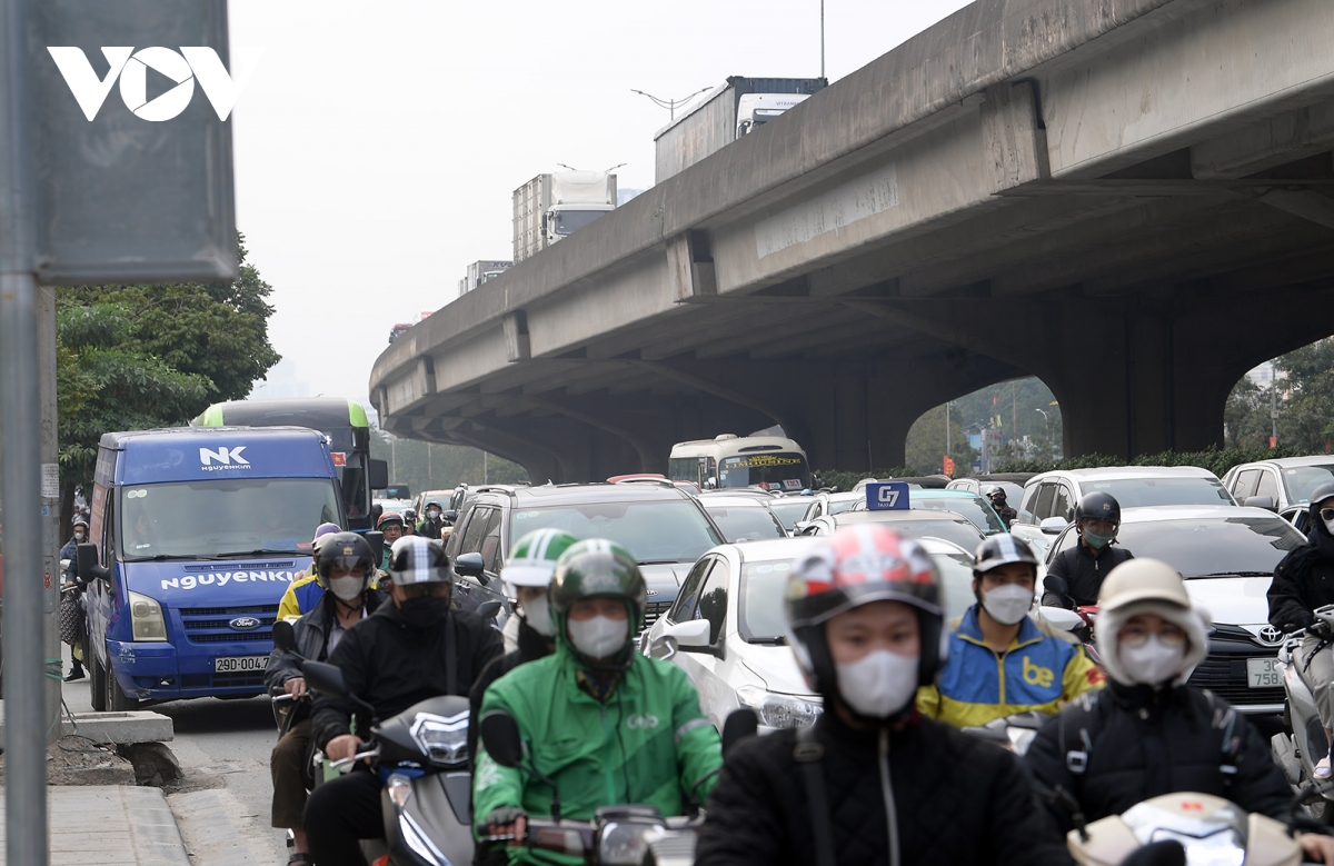 Từ đường dẫn nối vào cao tốc Pháp Vân - Cầu Giẽ cho đến đường Ngọc Hồi - Quốc lộ 1A hướng về phía Nam mật độ phương tiện càng dày đặc, nhiều đoạn di chuyển chậm do lượng người rời thành phố tăng đột biến trong ngày làm việc cuối cùng.