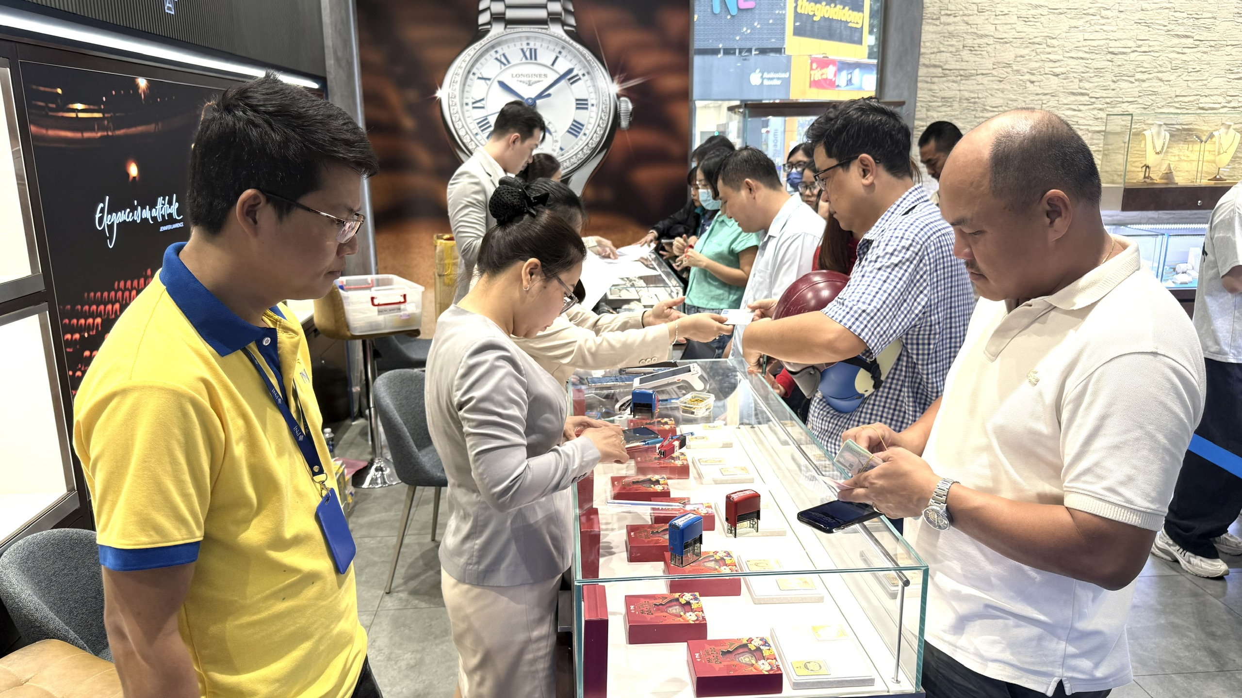 Khách hàng mua vàng Thần Tài tại Công ty PNJ ngày 26-2. Ảnh: HẠNH NHUNG