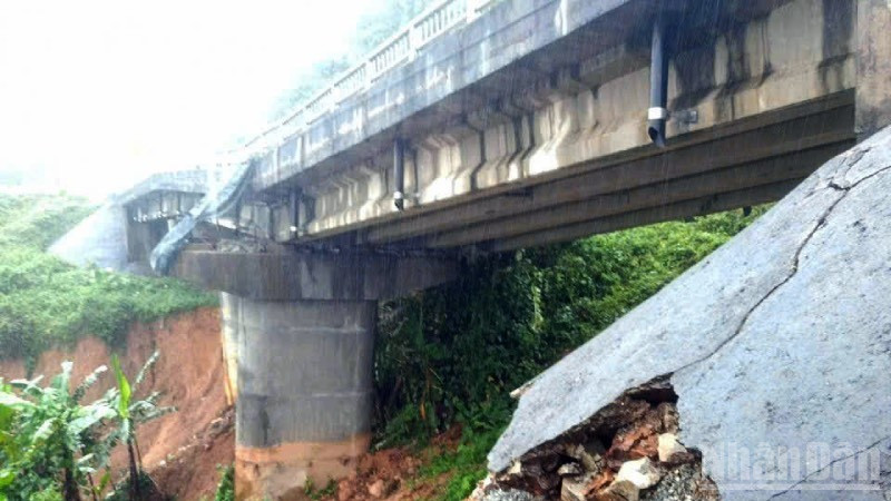 Cầu cạn tại Km 396 +050 tuyến Hồ Chí Minh nhánh tây bị hỏng nặng.