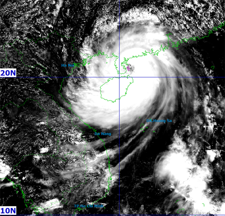 Bão số 11 Matmo đang ở thời điểm mạnh nhất, chiều tối nay đi vào vịnh Bắc Bộ. (Nguồn: NCHMF)