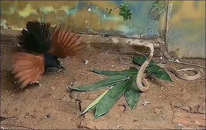 Sau khi phát hiện rắn hổ mang, chim bìm bịp nhanh chóng lao tới tấn công. Dựa vào sự nhanh nhẹn và khả năng né đòn cực tốt, kẻ săn mồi liên tiếp tránh thoát khỏi những cú đớp chí mạng của con rắn.