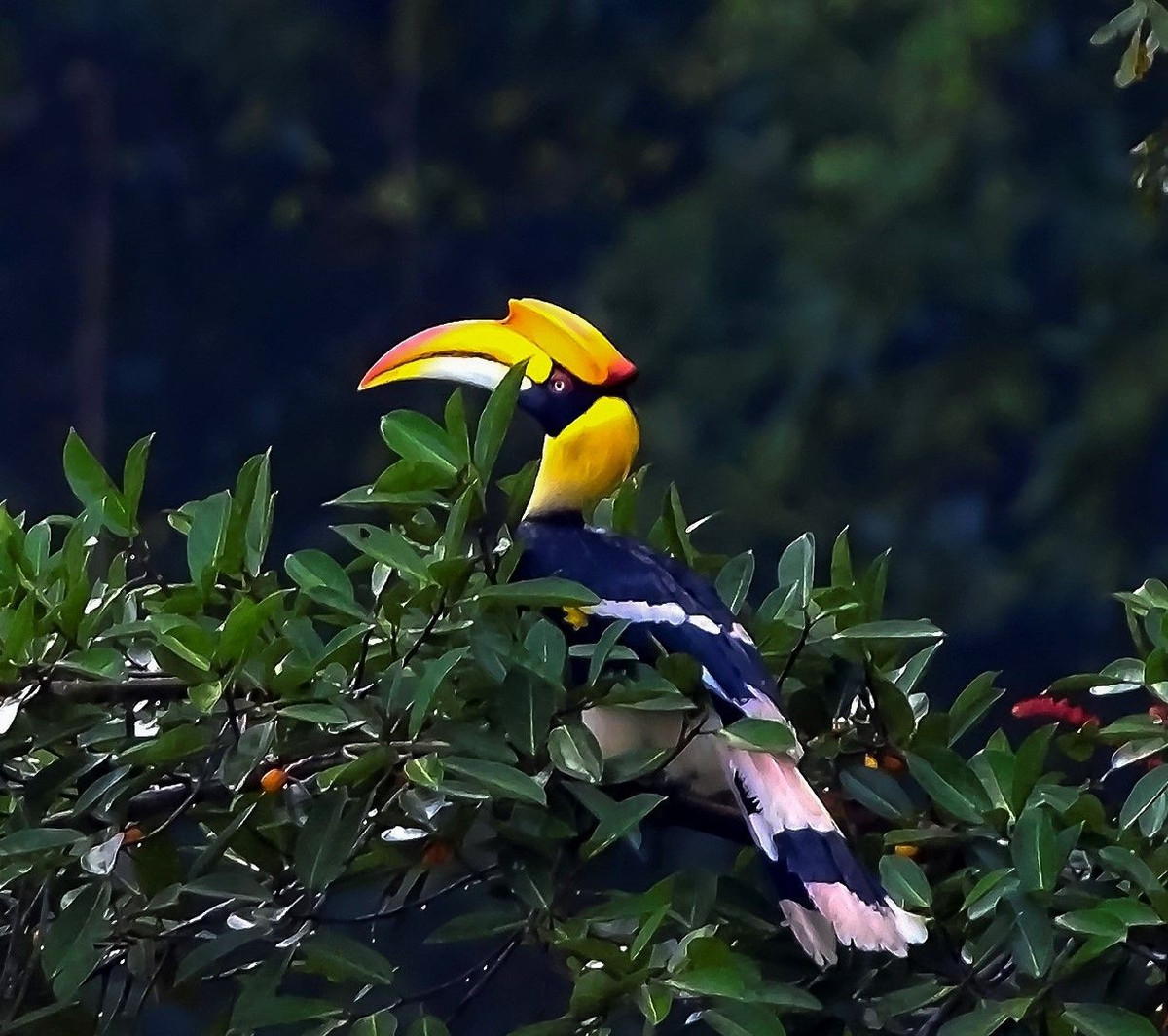 Đặc điểm nổi bật của chim hồng hoàng là chiếc mũ mỏ màu vàng tươi và đen trên đỉnh mỏ, cấu trúc rỗng bằng keratin (chất sừng) chiếm tới 11% trọng lượng cơ thể. Ảnh: Tăng A Pẩu.