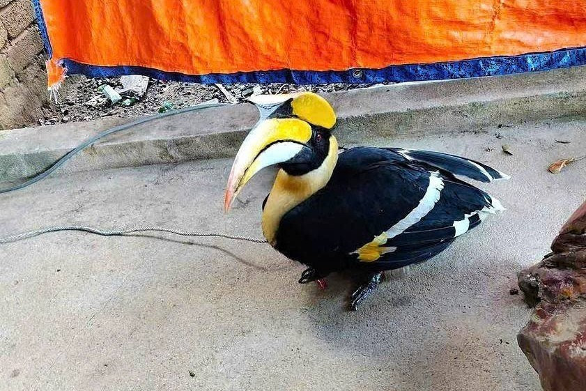 Sau khi tiếp nhận, cơ quan chức năng đã tiến hành chăm sóc, kiểm tra sức khỏe và đảm bảo các điều kiện an toàn trước khi thả cá thể chim hồng hoàng về rừng tự nhiên vào sáng hôm sau. Ảnh: cattiennationalpark.