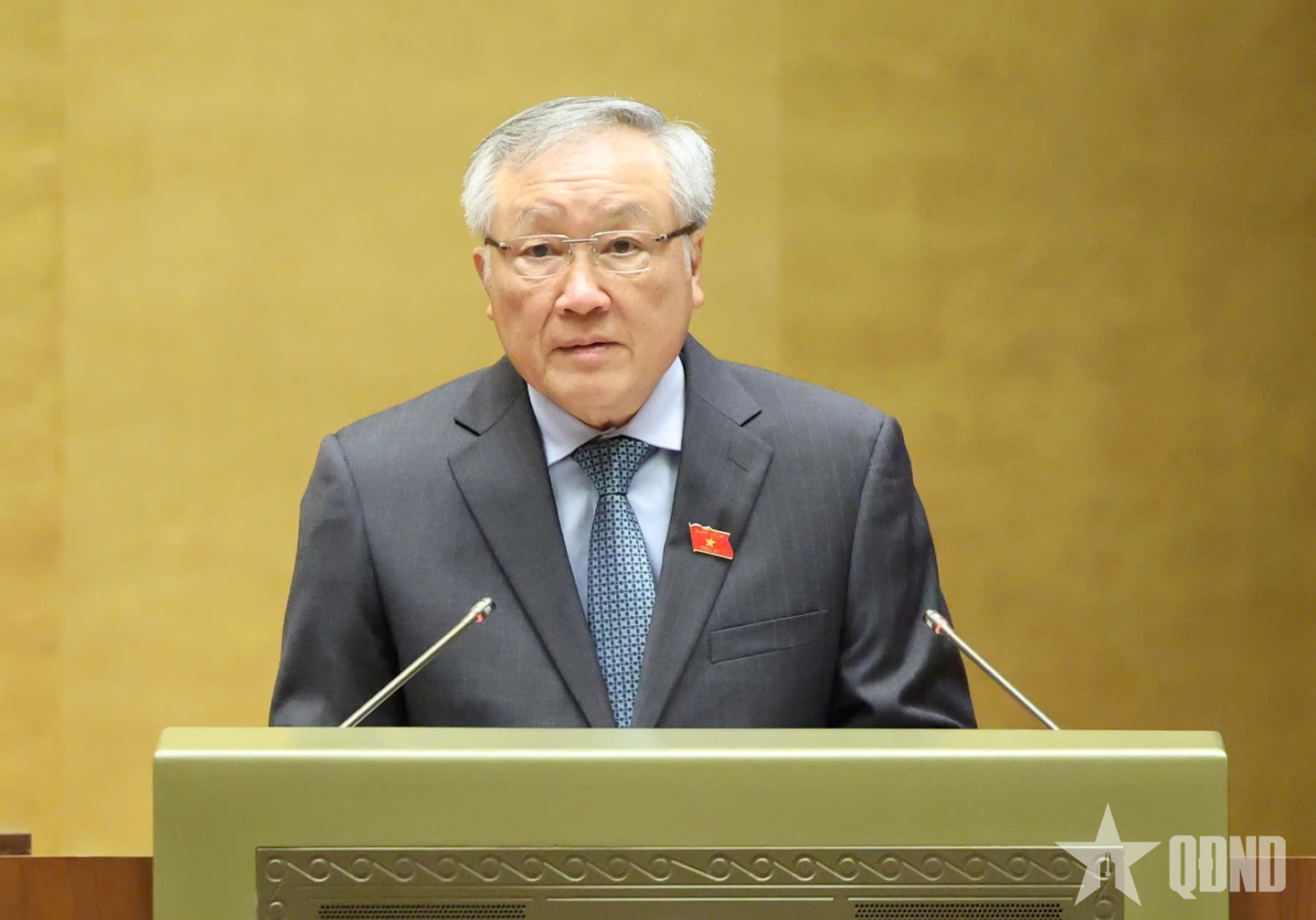 Phó thủ tướng Thường trực Chính phủ Nguyễn Hòa Bình thay mặt Chính phủ báo cáo Quốc hội.