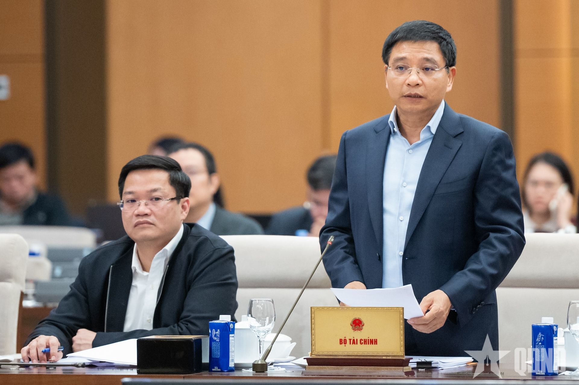 Bộ trưởng Bộ Tài chính Nguyễn Văn Thắng báo cáo tại phiên họp. Ảnh: PHẠM THẮNG