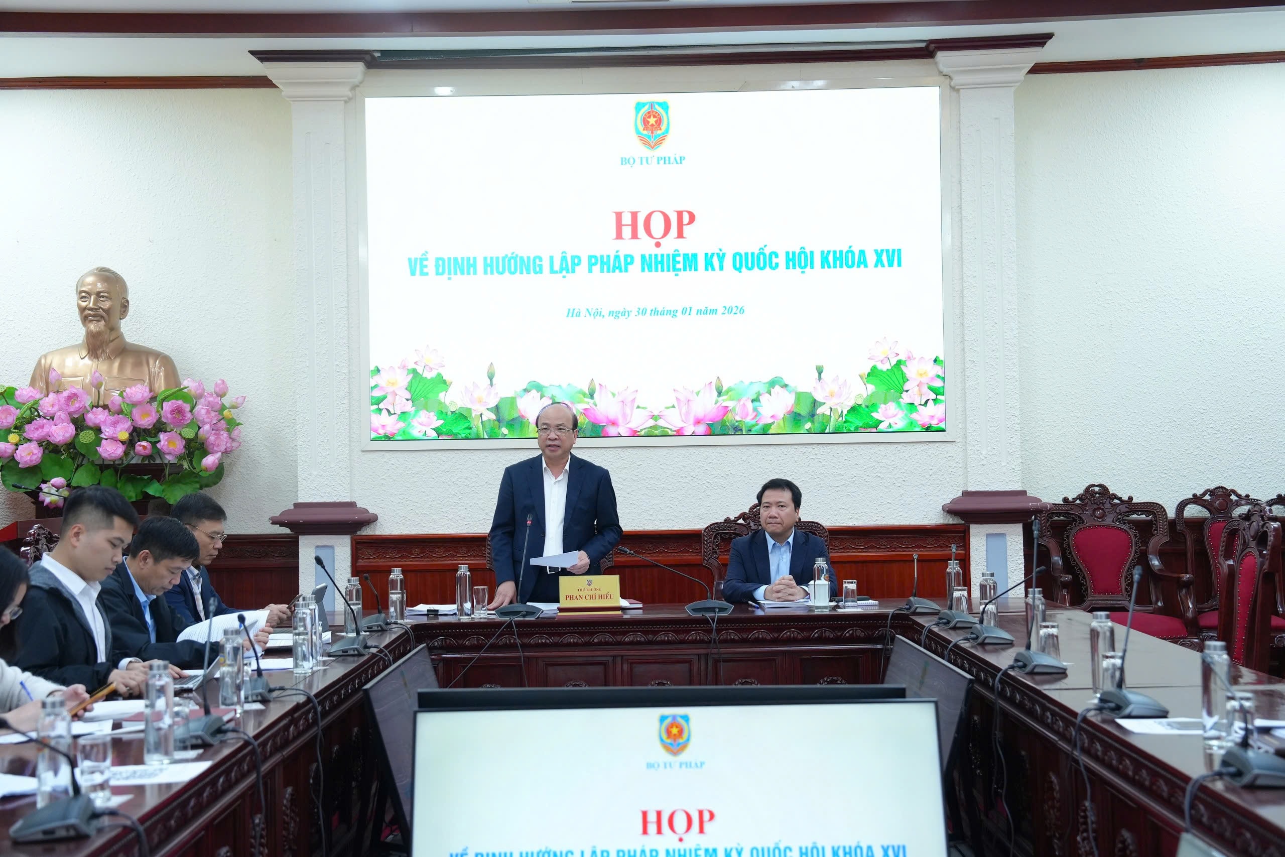 Kết luận cuộc họp, Thứ trưởng Phan Chí Hiếu nhấn mạnh, do tính chất cấp bách về tiến độ, các đơn vị đã có dự thảo văn bản báo cáo Đảng ủy Chính phủ và Quốc hội thì phải chuyển ngay cho Lãnh đạo Bộ, ngành để kịp thời gian xử lý và tham khảo. Trong ngày 31/1, các đơn vị phải có văn bản chính thức gửi Bộ Tư pháp để tổng hợp để đầu tuần tới họp về nội dung này, tránh bị điểm danh thiếu sót trong báo cáo.