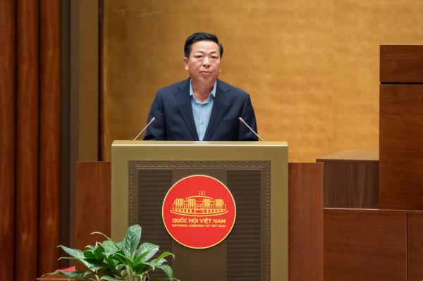 Bộ trưởng Bộ Xây dựng Trần Hồng Minh trình bày Tờ trình về việc điều chỉnh nội dung Nghị quyết số 94 của Quốc hội về chủ trương đầu tư Cảng hàng không quốc tế Long Thành.