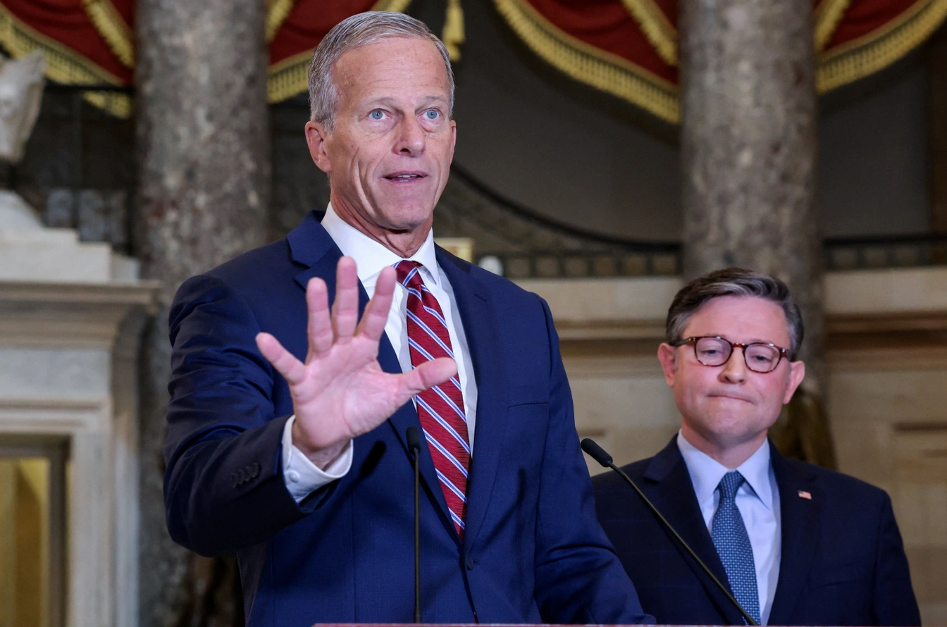Lãnh đạo phe đa số tại Thượng viện Mỹ John Thune phát biểu trong cuộc họp báo vào ngày chính phủ đóng cửa một phần. (Ảnh: Reuters)