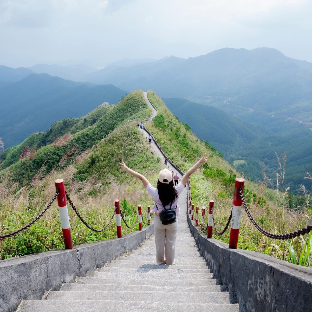 Để tới được đỉnh, du khách phải vượt qua khoảng 2.000 bậc thang với độ dốc trung bình, thời gian đi lên và xuống khoảng 3 tiếng. Đường leo tuy không quá khó, nhưng kéo dài liên tục, đòi hỏi sức bền và tinh thần kiên trì. Ảnh Rory Nguyễn