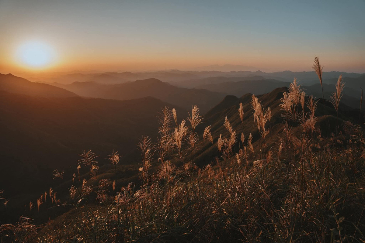 Theo kinh nghiệm của nhiều người từng chinh phục, thời điểm lý tưởng nhất để leo “sống lưng khủng long” là buổi sáng sớm, khi ánh bình minh lên trên dãy núi và sương vẫn còn vờn quanh triền đèo. Bình Liêu mùa nào cũng đẹp, nhưng đặc biệt quyến rũ vào tháng 8 – 10 (mùa lúa chín), tháng 10 – 11 (mùa cỏ lau trắng xóa) và tháng 11 – 1 (mùa hoa sở nở rộ). Ảnh Rory Nguyễn