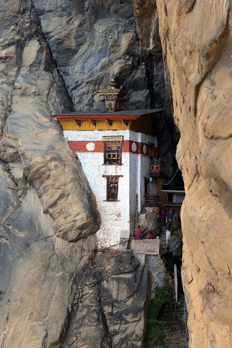 Những nền gỗ, ban công trắng, mái chùa nâu sẫm nằm cheo leo trên vách đá dựng đứng đến khó tin. Người Bhutan xem đây là tuyệt tác kiến trúc của họ, đó là sự kết hợp của đức tin, kỹ nghệ truyền thống và ý chí phi thường.