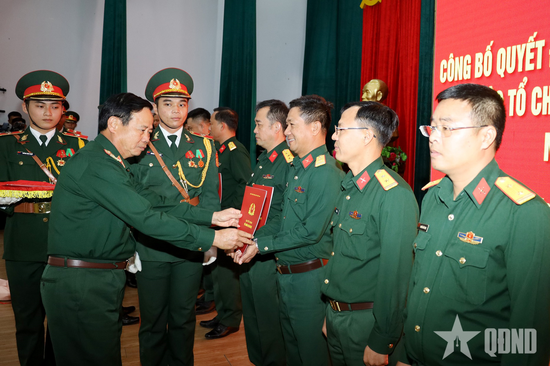 Thiếu tướng Hứa Văn Tưởng, Phó tư lệnh Quân khu 5 trao quyết định bổ nhiệm cán bộ tại Khánh Hòa.
