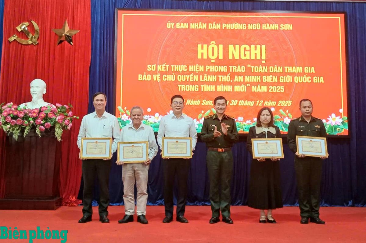 Dịp này, Ban Chỉ huy Bộ đội Biên phòng thành phố Đà Nẵng và Ủy ban nhân dân phường Ngũ Hành Sơn đã trao Giấy khen cho 30 cá nhân, tập thể có thành tích xuất sắc trong thực hiện Phong trào “Toàn dân tham gia bảo vệ chủ quyền lãnh thổ, an ninh biên giới quốc gia trong tình hình mới” năm 2025.