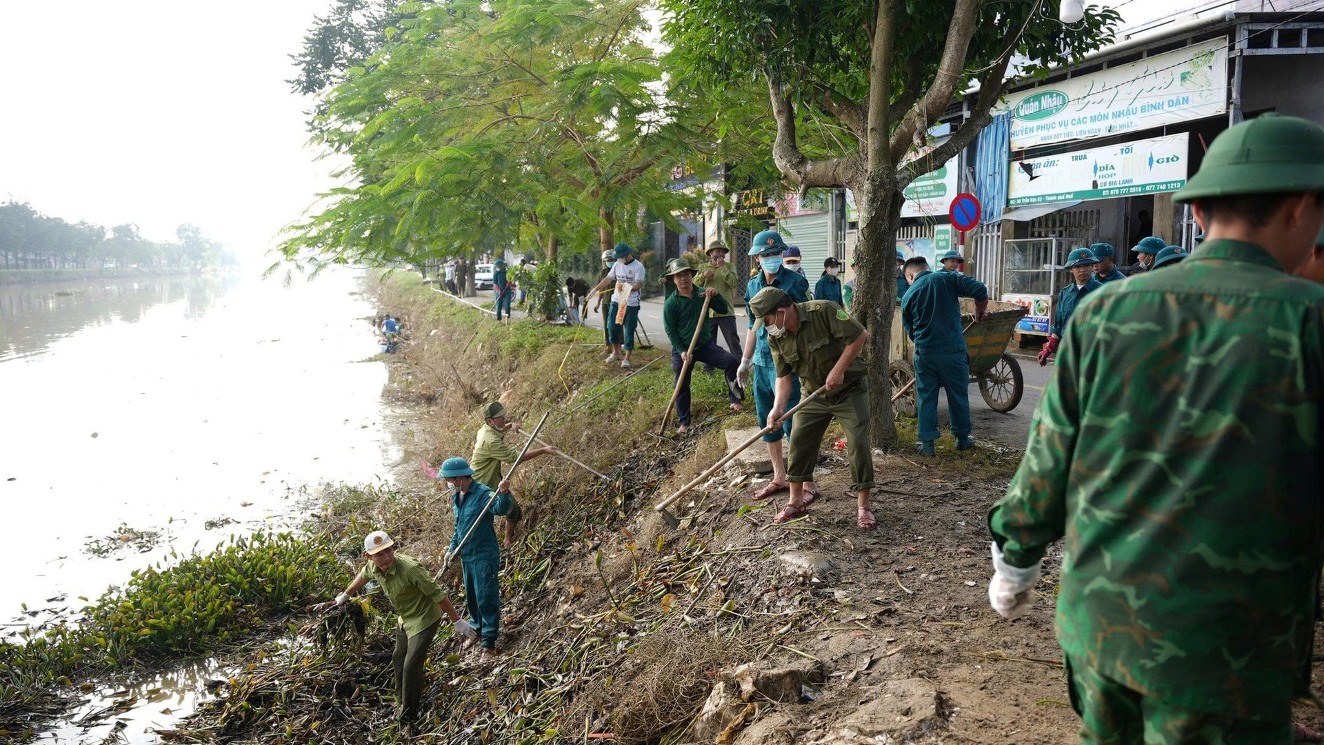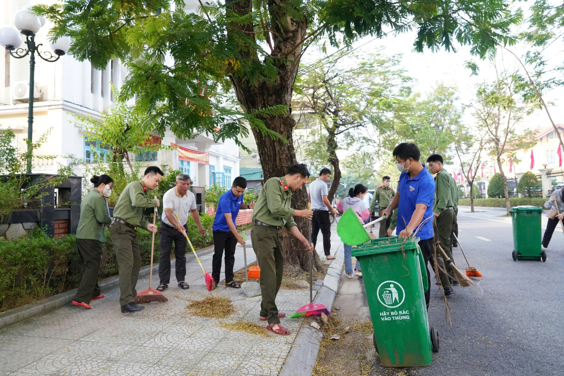 Lực lượng chức năng cùng người dân tham gia dọn vệ sinh, đường sá "Ngày Chủ nhật xanh".