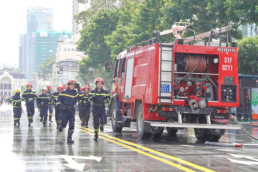 Một buổi diễn tập PCCC&CNCH tại TP.HCM. Ảnh minh họa: THUẬN VĂN