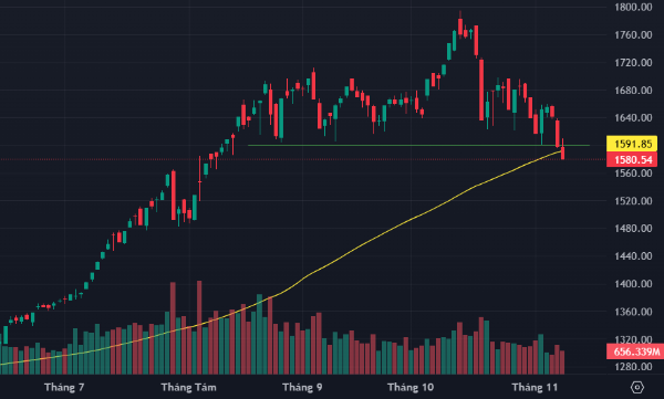 VN-Index chính thức mất mốc 1600 điểm và thủng MA100.