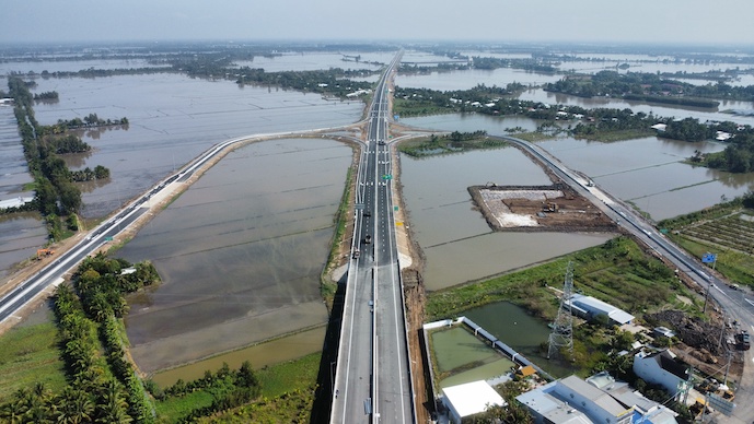 Toàn cảnh nút giao IC2 tại TP Cần Thơ, điểm đầu của cao tốc Cần Thơ - Cà Mau. Ảnh: Trung Chánh