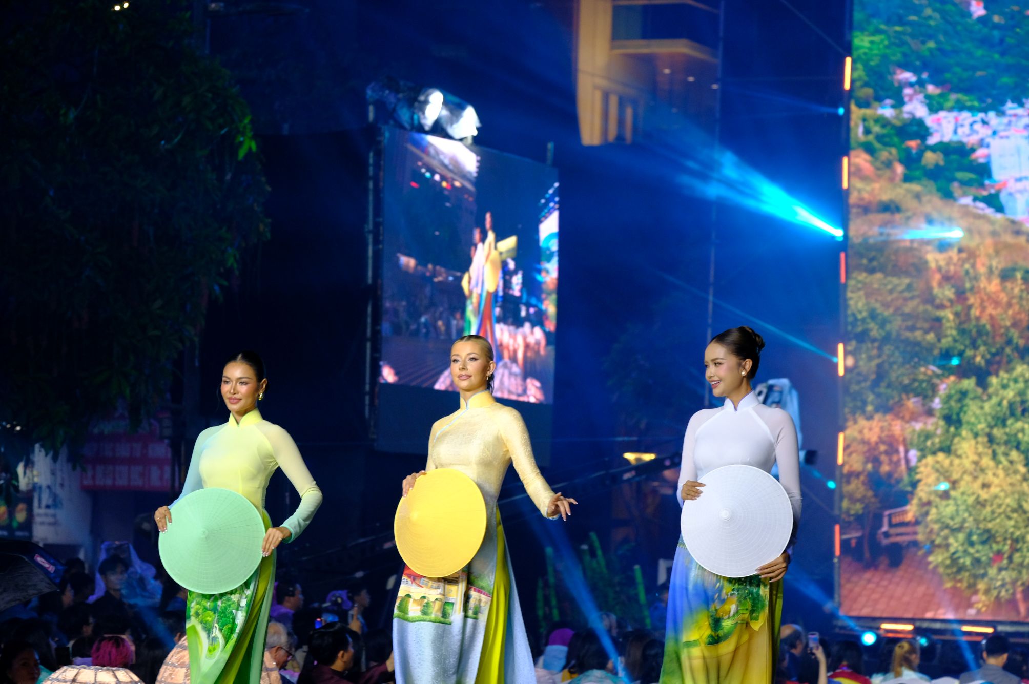 Người mẫu, hoa hậu trình diễn áo dài trong buổi khai mạc.