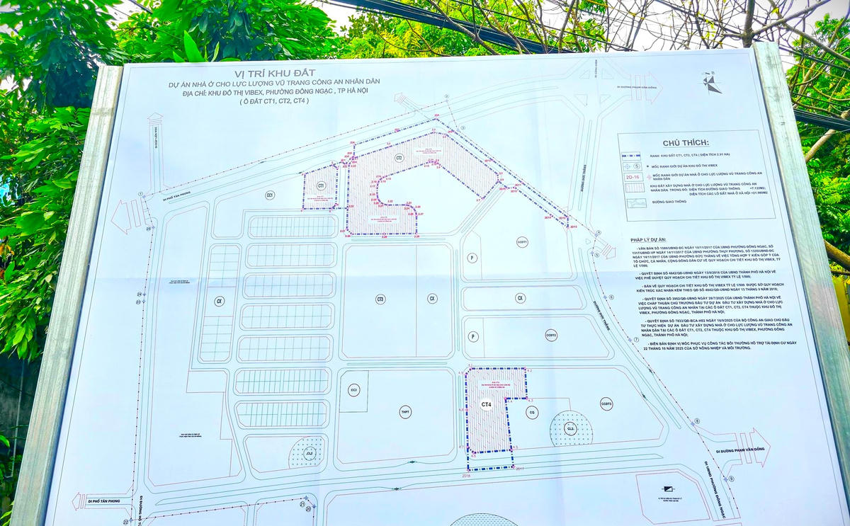 Về đất Dự án Khu đô thị Vibex đang có sự thay đổi. Trên khu đất này sẽ có 2 dự án. Dự án thứ nhất mang tên: Nhà ở cho lực lượng vũ trang công an nhân dân tại các ô đất CT1, CT2 và CT4. Dự án có tổng diện tích 29.206m2. Chủ đầu tư là Công ty Cổ phần đầu tư phát triển Thái Hà.