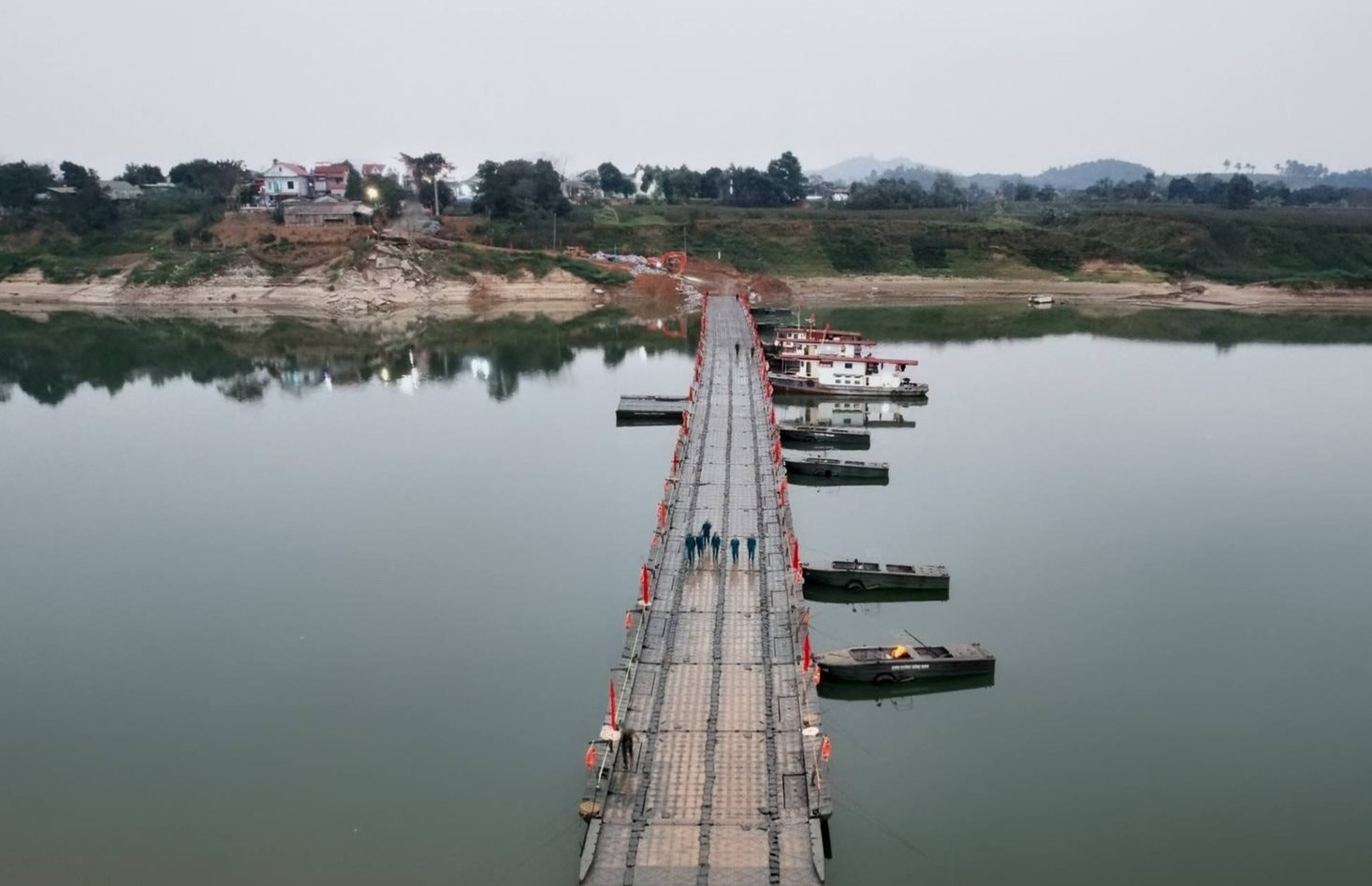 Trước đó, 21 giờ ngày 15/2 Binh chủng Công binh, Bộ CHQS tỉnh Phú Thọ hoàn thành lắp đặt cầu phao phục vụ nhân dân qua sông Lô. Cầu phao Sông Lô có chiều dài hơn 220m, mặt cầu rộng 6m, kết cấu cầu phao nổi.