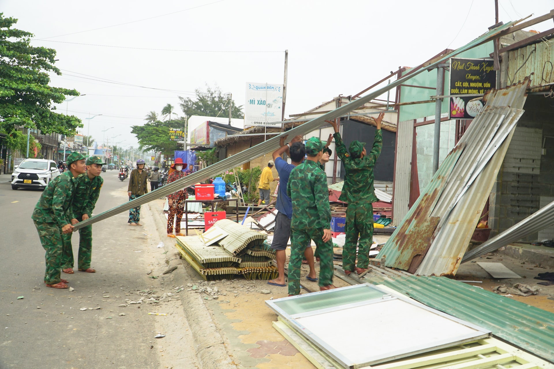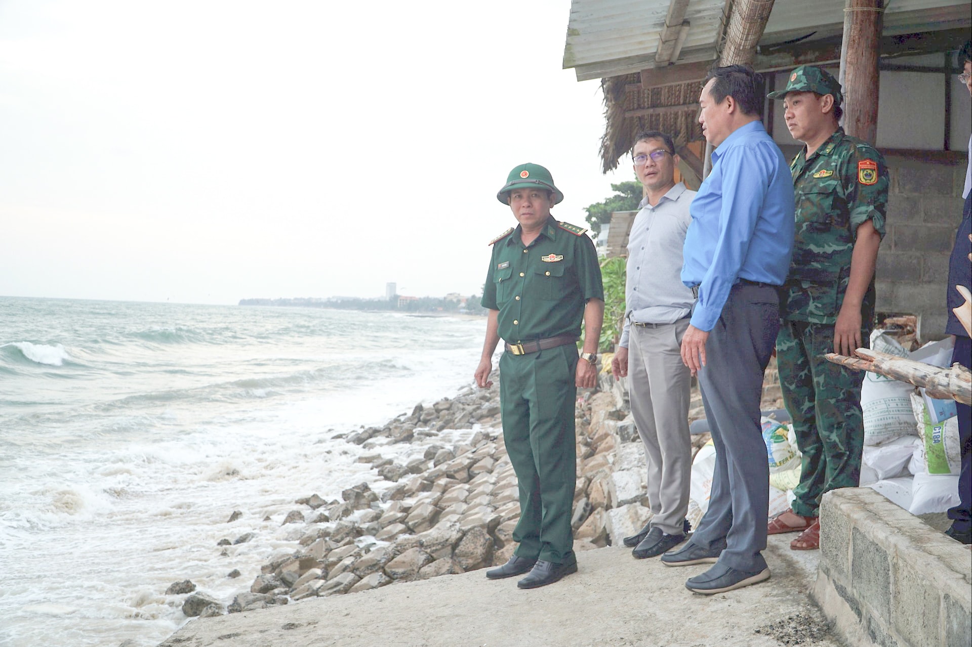 Chiều cùng ngày, Đại tá Trần Việt Hưng, Chính ủy Bộ đội Biên phòng tỉnh đã kiểm tra thực tế tình trạng sạt lở kè biển và thiệt hại của do triều cường gây ra tại khu phố Hàm Tiến 1, phường Mũi Né.