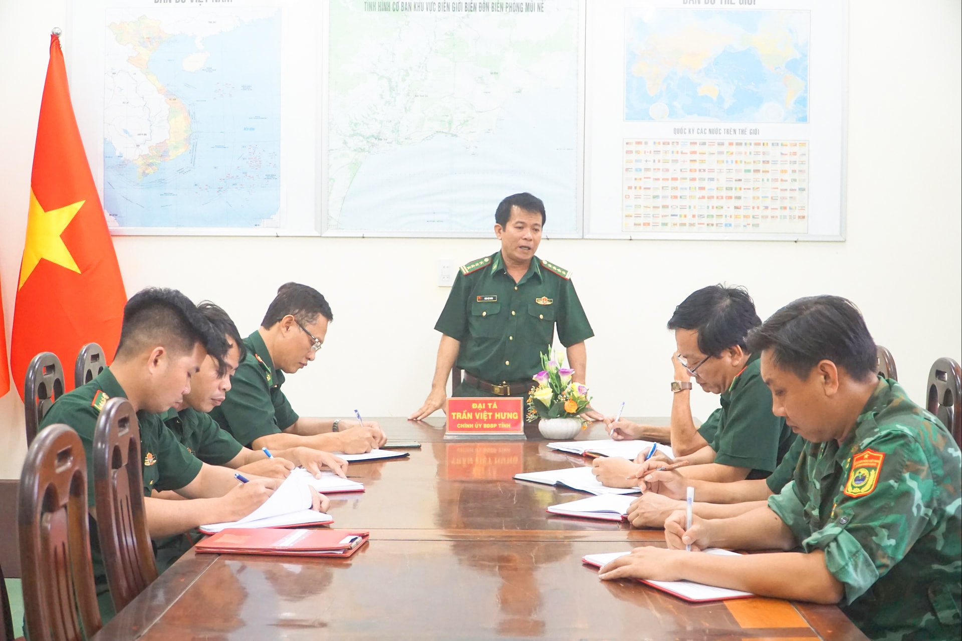 Đại tá Trần Việt Hưng, Chính ủy Bộ đội Biên phòng tỉnh chỉ đạo tại buổi làm việc với Đồn Biên phòng Mũi Né